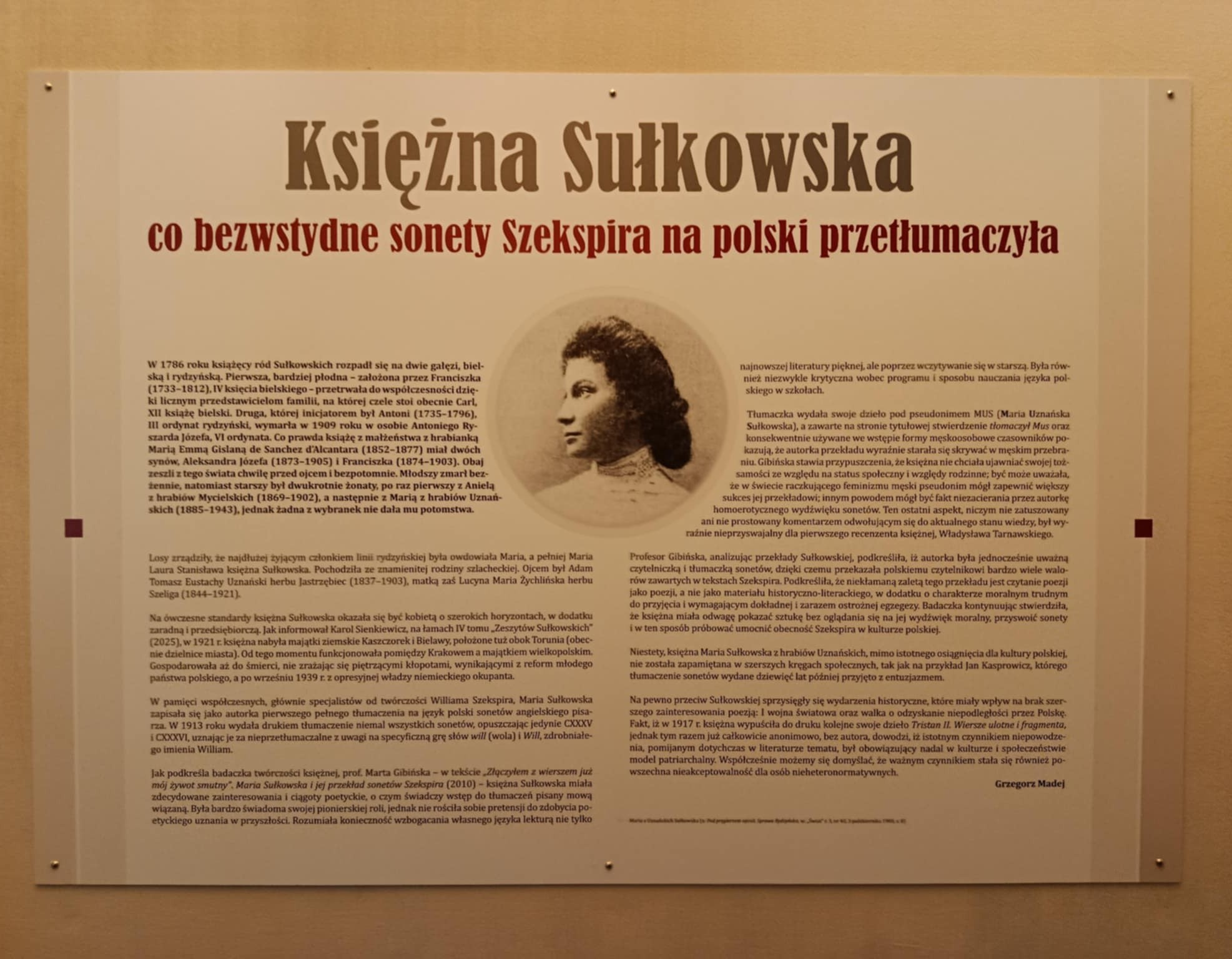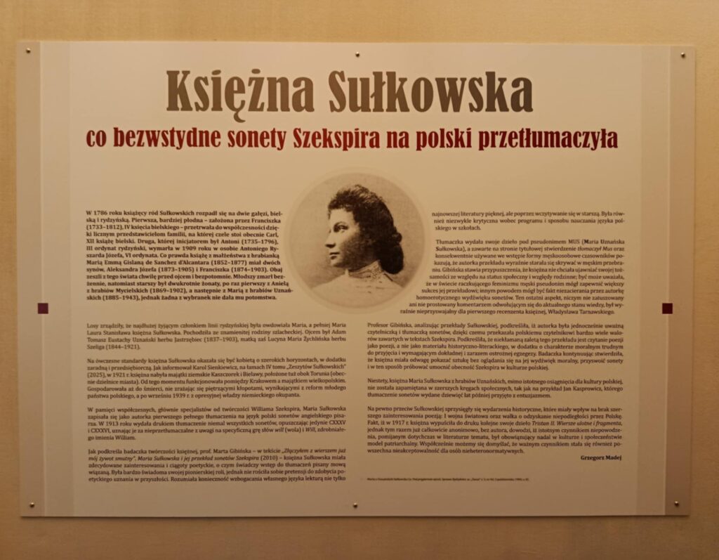 W niedzielę 16 marca 2026 r. w gościnnych progach Zamku Książąt Sułkowskich – Muzeum Historycznym w Bielsku-Białej pojawiła się księżna Maria Sułkowska. Odbyło się bowiem niezwykłe wydarzenie: spotkanie z okazji Dnia Kobiet poświęcone księżnej Sułkowskej z Uznańskich – pierwszej tłumaczce Sonetów Shakespeare’a. Nie zabrakło tam toruńskich akcentów.